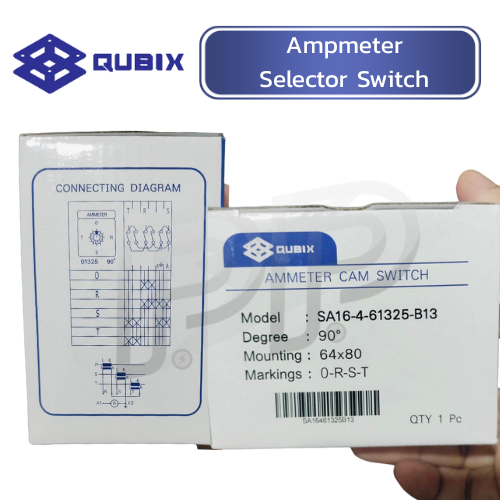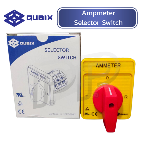 ซีเล็คเตอร์แอมป์ (Selector Amp Switch) ของยี่ห้อ QUBIX คือ สวิตช์หมุนที่ใช้สำหรับเลือกการทำงานของวงจรไฟฟ้ากระแส เพื่อวัดค่ากระแสไฟฟ้า (Amps) ในระบบควบคุมต่างๆ โดยมีหลายรุ่น เช่น รุ่น SA16-4-61325-B13 ที่มีหน้าปัดสีแดงเหลืองขนาด 64x80 มม. และมีคุณสมบัติ เช่น ทนแรงดันไฟฟ้าได้ 690V และมีอายุการใช้งานทั้งทางกลและทางไฟฟ้า