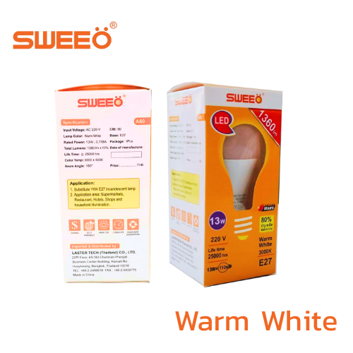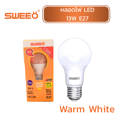 หลอดไฟ LED E27 แสงWarm White 13W “SWEEO”