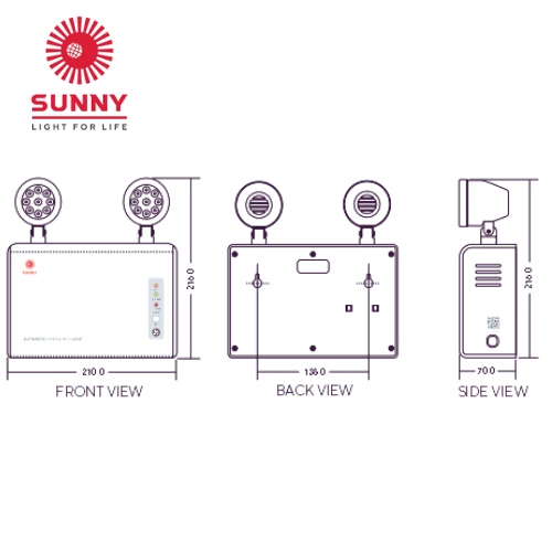 - ฟังก์ชันการตั้งเวลาทดสอบ อัตโนมัติทุก 1 เดือน 60 วินาที, ทุก 1 ปี 120 นาที (Auto Test) ตามมาตรฐานวสท.021004-22 เปิด-ปิด ฟังก์ชั่นด้วยรีโมท